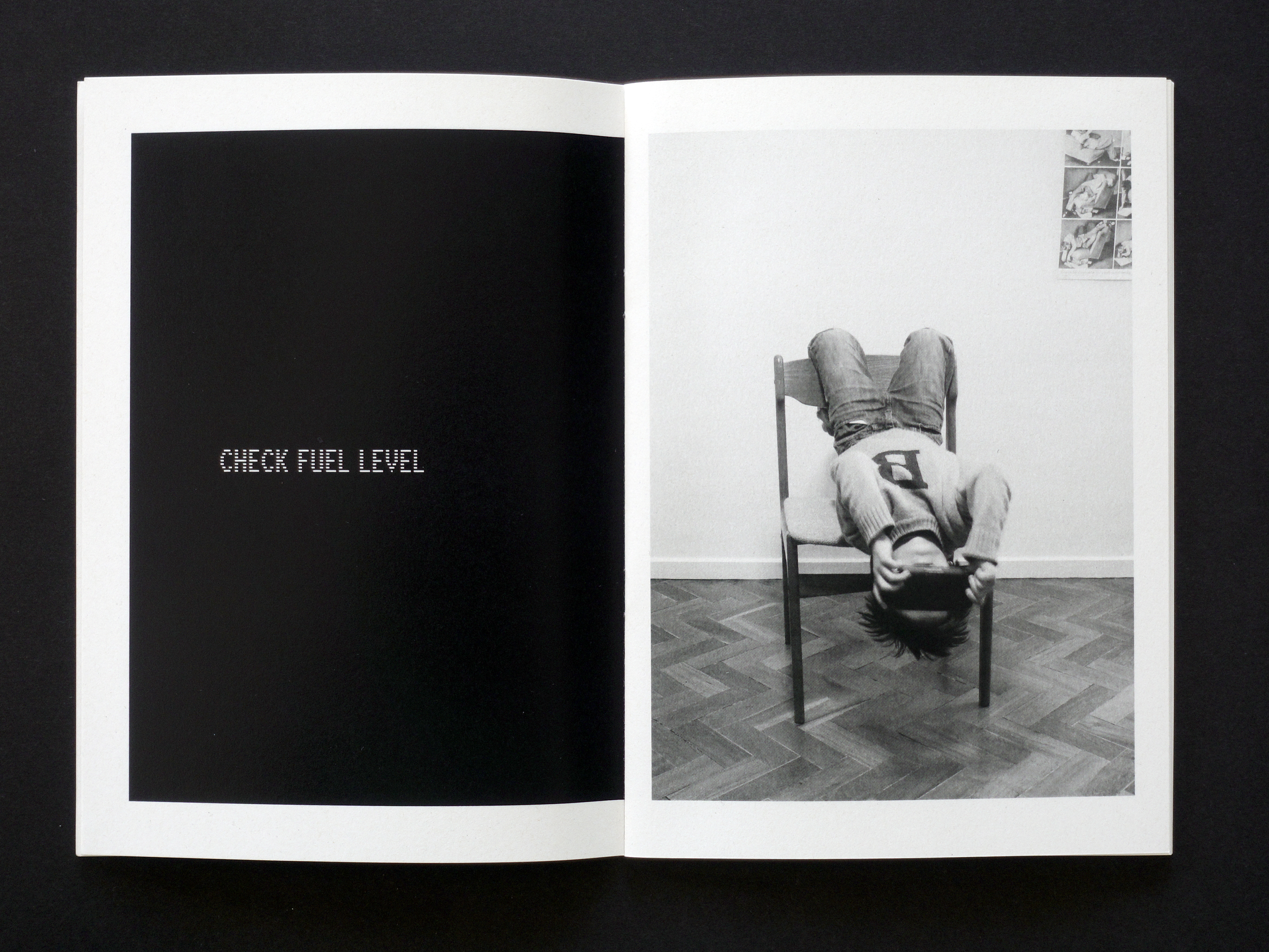 "Em 2012, encontrei um poster de "Ricerca della comodità in una poltrona scomoda" [À procura de uma posição confortável numa cadeira desconfortável], de Bruno Munari. Em 14 imagens, um homem experimenta várias posições para se sentar numa cadeira enquanto lê o seu jornal. Desde então, está afixado numa das paredes da sala-de-jantar. Na sua versão original, era um artigo no qual Munari criticava a inflação de novas cadeiras inventadas pelos designers, quando ainda havia tanto a fazer para “conseguir” uma simples cadeira. Uns meses mais tarde, o meu filho recebeu uma consola de jogos de vídeo como presente e correspondências coreográficas começaram a aparecer entre o cartaz de Munari e as estranhas posições dessa criança absorvidas nos seus jogos. Cabeça para baixo, pinos, cambalhotas, etc. Uma ginástica à procura de aparelhos invisíveis. Cada posição exigia uma nova cadeira que recebesse as posturas de um corpo vivendo aventuras extraordinárias. Uma cadeira provavelmente impossível de conseguir."